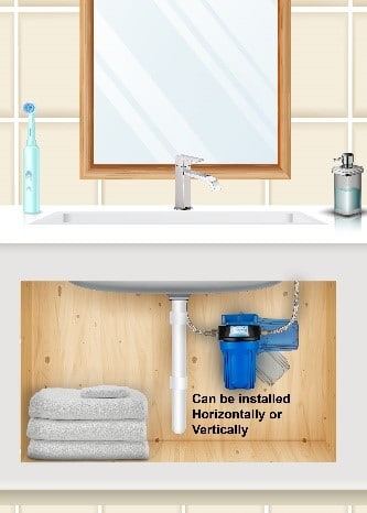 מערכת סינון וטיהור קומפקטית להתקנה בארון הכיור בחדר האמבטיה